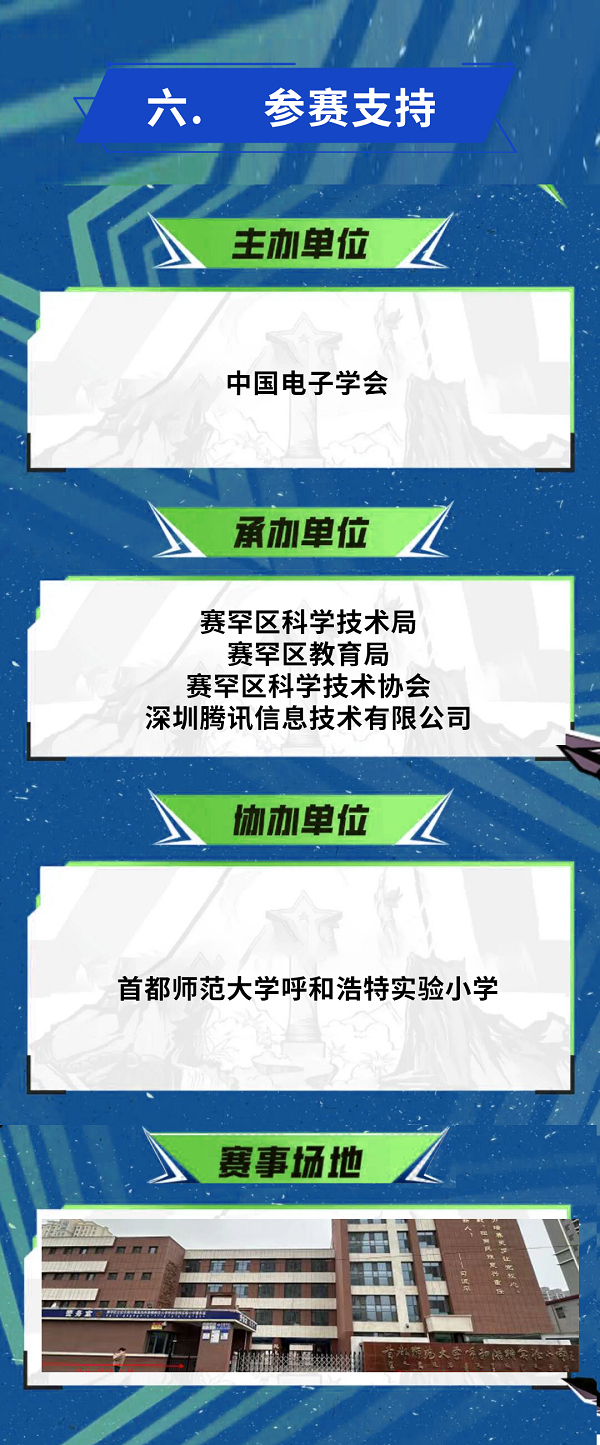 本次大赛由中国电子学会主办,呼和浩特市赛罕区科学技术局、教育局、科学技术协会承办,首都师范大学呼和浩特实验小学协办。大赛旨在深入贯彻国家关于教育、科技与人才发展的战略部署,通过富有挑战性的机器人竞赛项目,为呼和浩特市中小学生搭建一个展示才华、交流学习的平台,推动人工智能与创客教育普及,助力“双减”工作提质增效。